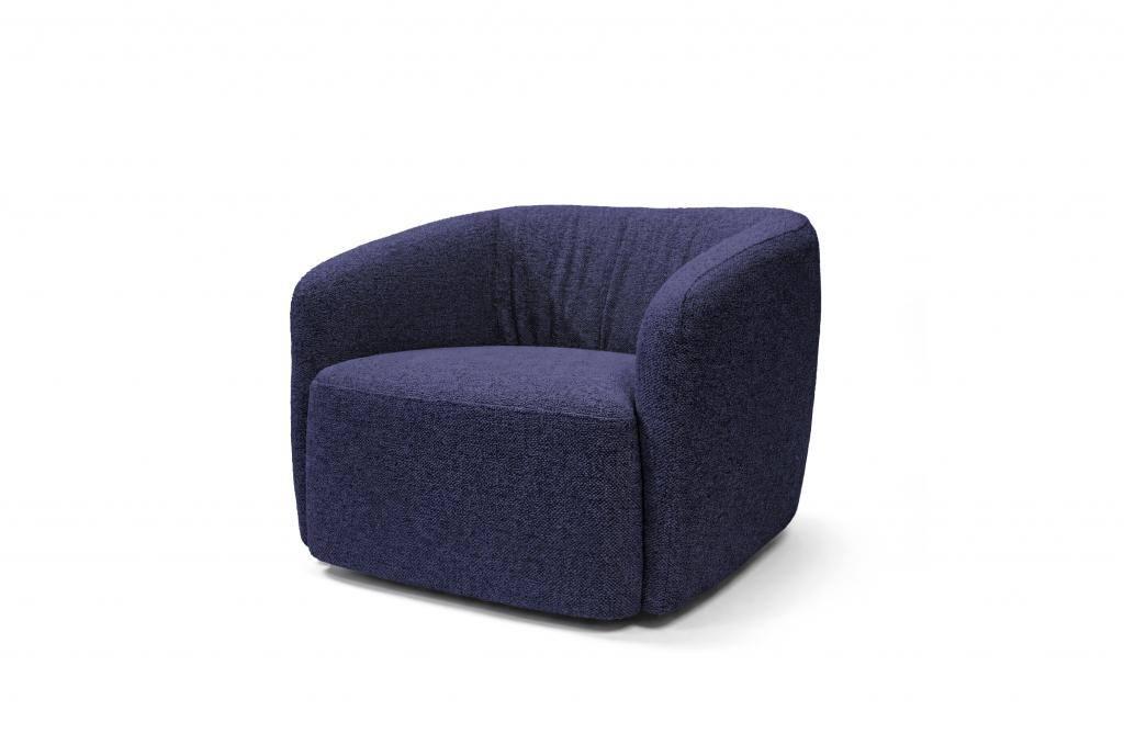 Особый характер креслу придаёт спинка со складками — выразительный дизайнерский элемент, который оживляет форму, добавляет ей динамики и визуальной глубины.