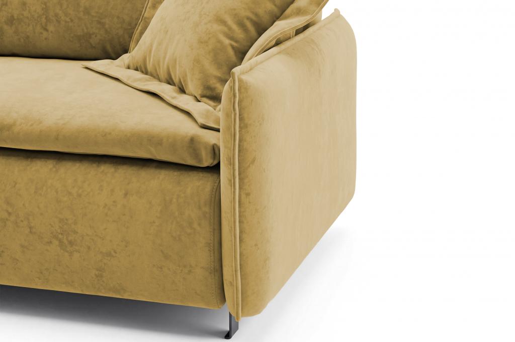 Опоры дивана могут быть выполнены в черном или золотом вариантах, подчеркивая его элегантный стиль.