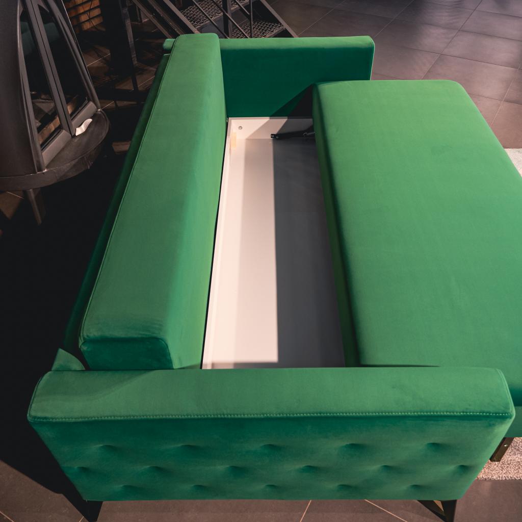 Практичность модели продумана до мелочей: вместительный ящик для хранения позволяет удобно разместить постельное бельё, пледы или сезонные вещи, сохраняя порядок и функциональность пространства.