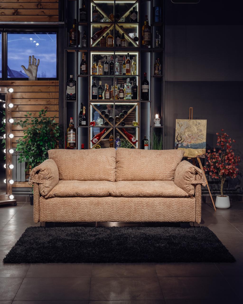 Наполнение матраса и подушек выполнено из качественного волокна, благодаря чему диван сохраняет форму, мягкость и привлекательный внешний вид на протяжении долгого времени.