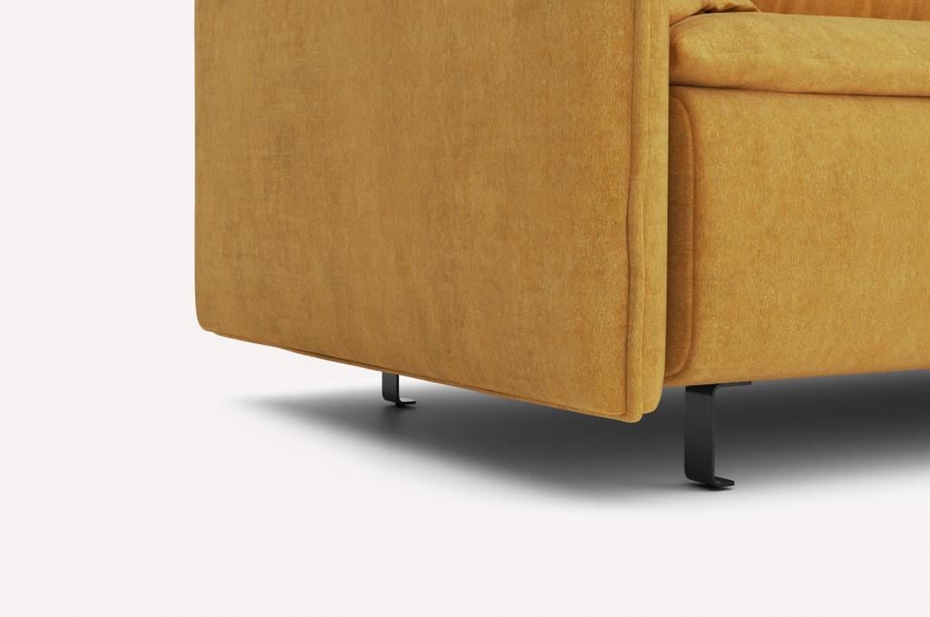 Опоры дивана могут быть выполнены в черном или золотом вариантах, подчеркивая его элегантный стиль.