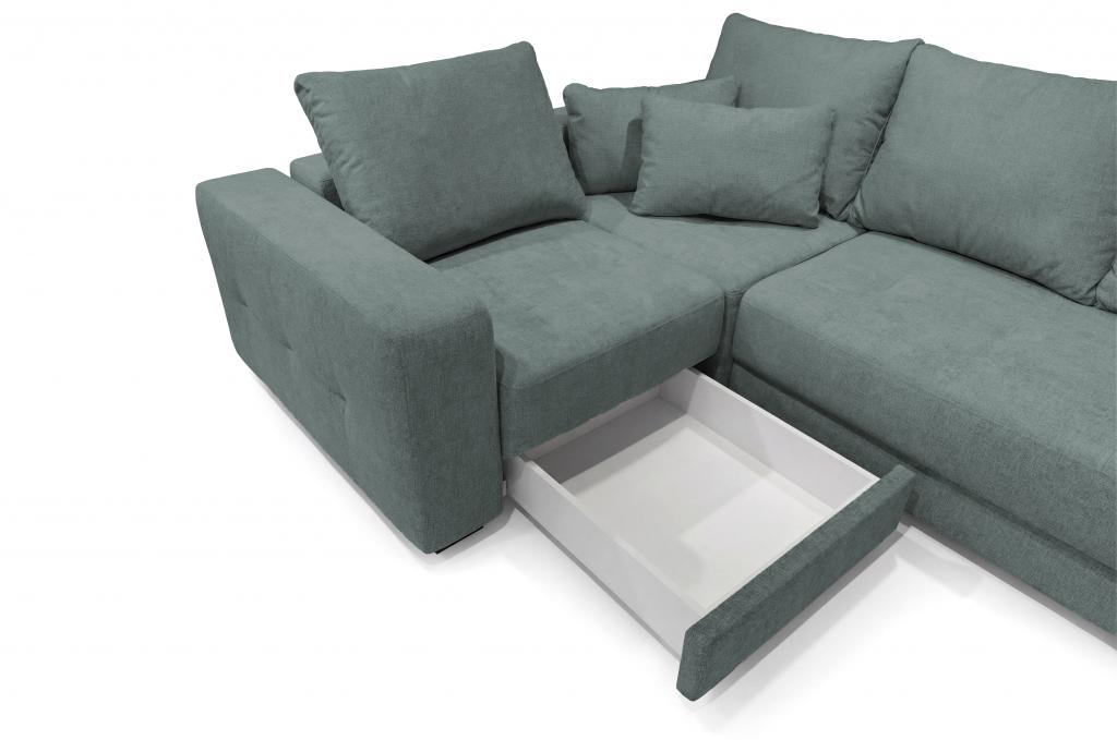 Диван оснащён двумя вместительными ящиками для хранения, которые отлично подойдут для размещения постельного белья, пледов и других необходимых вещей.
